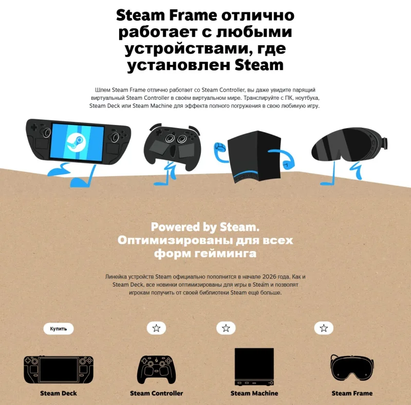 Steam Frame — это не просто VR-шлем. Это самостоятельное устройство, не требующее ПК для игровой трансляции. Оно поддерживает те же функции SteamOS, что и другие продукты Valve, включая режим паузы и возобновления, облачные сохранения и полноценный десктопный интерфейс на базе KDE Plasma. Сервис Steam Frame Verified поможет пользователям выбирать игры, оптимизированные для автономной работы.