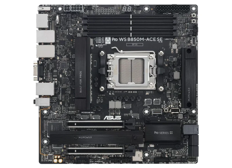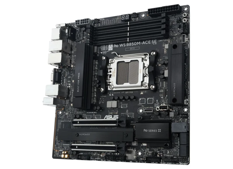 Компания Asus представила материнскую плату Pro WS B850M-ACE SE в форм-факторе Micro-ATX, ориентированную на домашние рабочие станции. Устройство уже поступило в продажу в Китае стоимостью 4499 юаней (примерно $633). Эта модель создана для «продвинутых ПК с искусственным интеллектом» и совместима с потребительскими процессорами AMD Ryzen серий 9000, 8000 и 7000, а также со специализированными чипами AMD Epyc 4005, использующими сокет AM5.