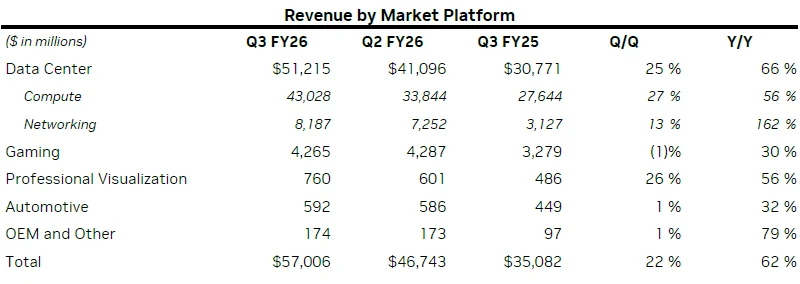 Игровой сегмент увеличил выручку на 30% в годовом сравнении до $4,3 млрд (что составляет 7,5% от общего дохода), однако по сравнению с предыдущим кварталом она снизилась на 1%. Как пояснила финансовый директор, эта коррекция связана с нормализацией складских запасов в преддверии сезонных праздничных распродаж. Годовой рост в игровом направлении был обеспечен в основном высокой популярностью архитектуры Blackwell.