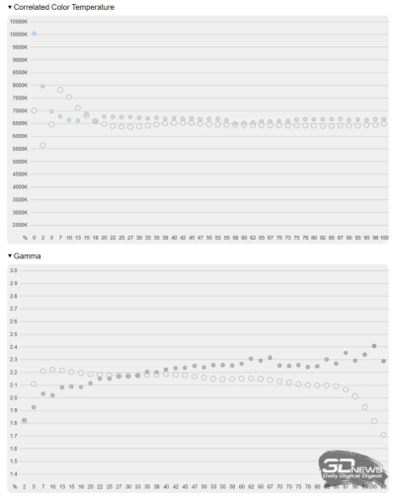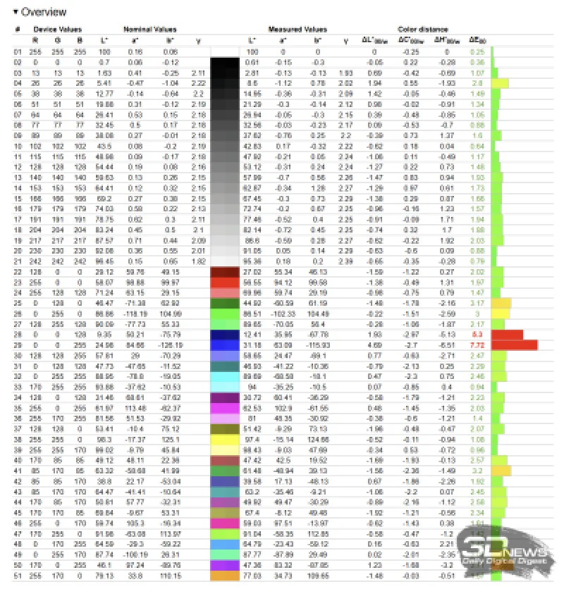 Анализ качества дисплея проводится с использованием калибратора X-Rite i1Display Pro и программного обеспечения DisplayCAL 3.