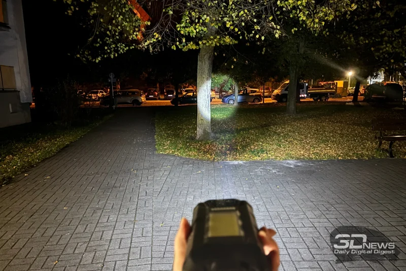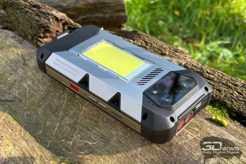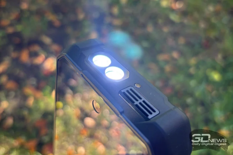 Возможно, главной особенностью 8849 Hike является прожектор — защищённые смартфоны с ёмкими аккумуляторами мы уже встречали как у 8849, так и у других производителей. Однако ни одна модель ранее не оснащалась направленным источником света мощностью до 1200 люмен, способным освещать местность на расстоянии до 200 метров. Примечательно, что этот прожектор дополнен системой активного охлаждения — при продолжительной работе включается вентилятор, предотвращающий перегрев.