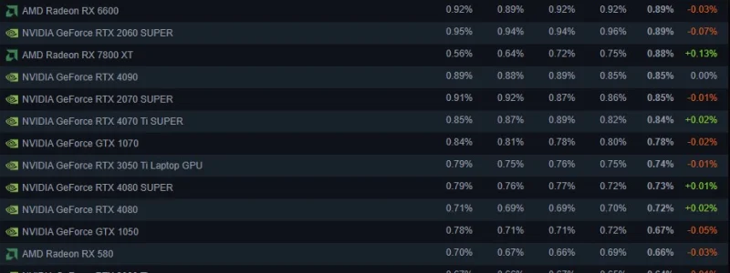 Наиболее востребованной видеокартой на платформе вновь стала мобильная GeForce RTX 4060. Уже несколько месяцев первое место попеременно занимают она и настольная GeForce RTX 3060. Последняя в ноябре уступила 0,14 п.п., поэтому её итоговая доля составила 4,33 %. Мобильная GeForce RTX 4060, напротив, прибавила те же 0,14 п.п., достигнув показателя в 4,44 % по итогам месяца. Третью позицию по популярности занимает десктопная версия GeForce RTX 4060 с долей 4,15 % (потеря 0,02 п.п. за месяц).