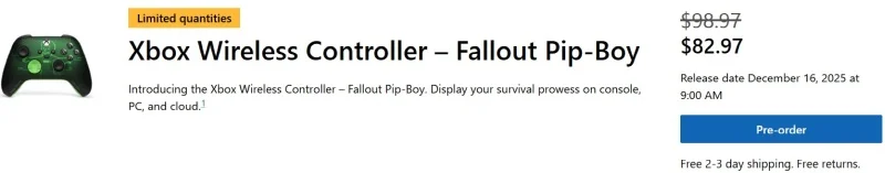 В официальном магазине Microsoft открыт предзаказ на специальные игровые манипуляторы: Xbox Wireless Controller и Xbox Elite Wireless Controller Series 2 в тематике Fallout Pip-Boy. Как заявляет производитель, оформление этих геймпадов «повторяет мягкое зелёное свечение вашего персонального Pip-Boy, включая хорошо знакомые по игре элементы интерфейса».