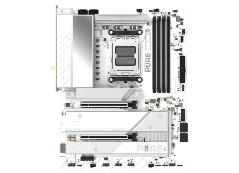 Компания Sapphire представила свою дебютную материнскую плату на базе чипсета AMD X870 — модель Pure X870A WIFI 7. Её дизайн выполнен в серебристо-белых тонах, чтобы гармонировать с видеокартами линейки Sapphire Radeon RX 9070 Pure, что делает её отличным выбором для создания полностью светлых системных блоков.