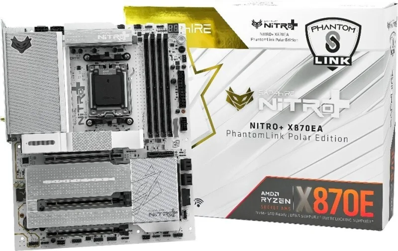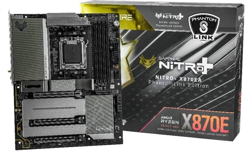 Основными особенностями материнских плат Nitro+ X870EA PhantomLink PE (выполнена в бело-серебристой гамме) и Nitro+ X870EA PhantomLink (титановый цвет) являются 19-фазная система питания VRM (компоновка 16+2+1, фазы по 90 А), поддержка до 256 ГБ оперативной памяти DDR5-8400+ (при разгоне), один слот PCIe 5.0 x16, два слота PCIe 4.0 x4, четыре слота M.2 (два с интерфейсом PCIe 5.0 и два с PCIe 4.0). Также среди оснащения можно отметить два порта USB4 (Type-C, 40 Гбит/с), поддержку Wi-Fi 7 и Bluetooth 5.4, а также сетевой контроллер на 5 Гбит/с. Для подключения фронтальных панелей на платах предусмотрены два разъёма USB 3.2 Gen1 Type-A (5 Гбит/с) и один разъём USB 3.2 Gen2×2 Type-C (20 Гбит/с). За аудиотракт отвечает кодек Realtek ALC897.