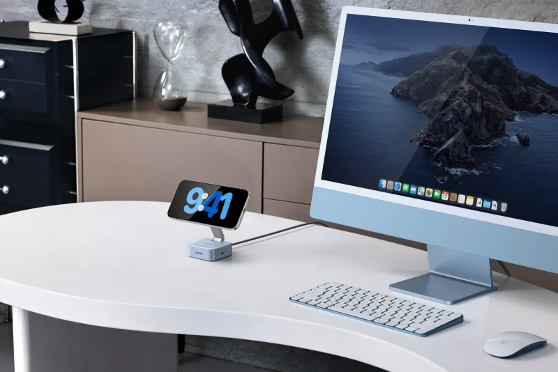 Интересной особенностью этой модели является совместимость с режимом Apple StandBy: при горизонтальном положении iPhone на зарядке экран переходит в фирменный режим с часами и виджетами. Магнитная система включает 16 элементов класса N48H с усилием около 7 Н, что гарантирует устойчивое крепление телефона даже в защитном чехле. Габариты устройства — всего 60 × 60 × 42,5 мм, вес — 224 г. Комплектация включает кабель USB-C длиной 1 метр.