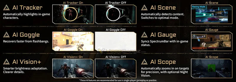- AI Gauge: связывает подсветку SpectrumBar на мониторе с игровыми показателями, выводя их в стилизованном HUD-интерфейсе.