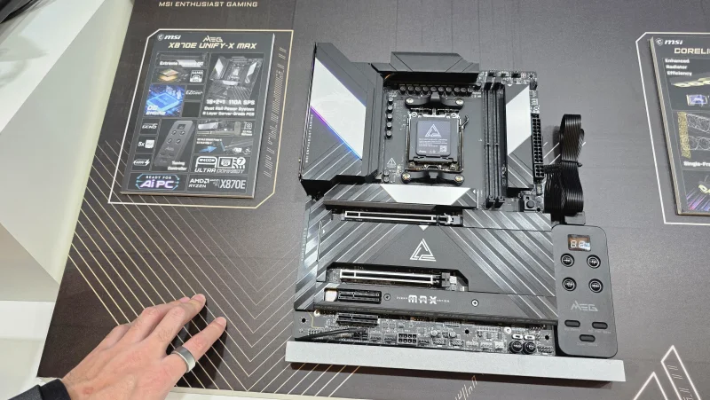 Кроме того, компания представила на выставке широкий ассортимент комплектующих для компьютеров, среди которых — системы воздушного охлаждения, материнские платы, корпуса, мониторы и графические ускорители, в том числе новейшую модель MSI GeForce RTX 5090 Lightning.