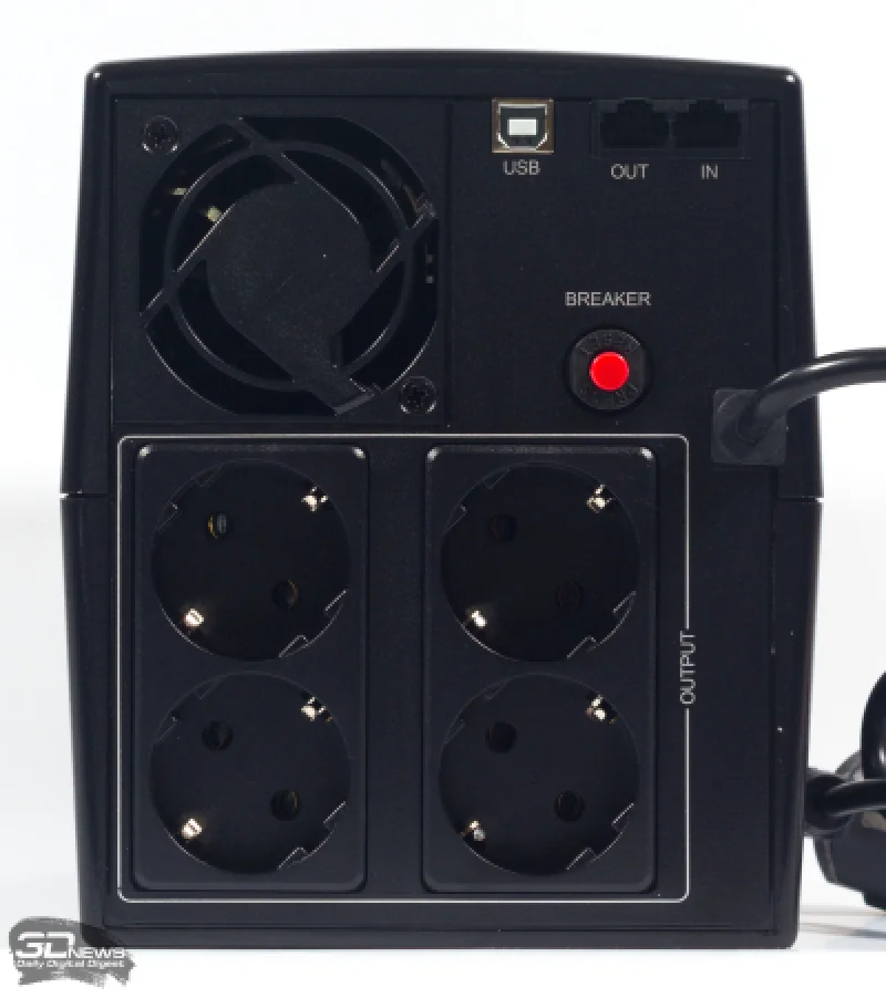 На момент подготовки этого материала стоимость QTM-1500T-4F-LCUC начиналась от 9 596 рублей. Данная модель представляет собой классический пример бюджетного ИБП для бытового и офисного применения, хотя и отличается сравнительно высокой мощностью. Устройство функционирует в широком диапазоне входного напряжения — от 162 до 290 В при частоте 50/60 Гц. Номинальное выходное напряжение составляет 220 В, однако, как и у любого ступенчатого стабилизатора, точное поддержание этой величины не гарантируется. Согласно техническому описанию, в модели предусмотрена защита локальной сети от импульсных скачков напряжения, но для силовых разъёмов аналогичная функция не указана.