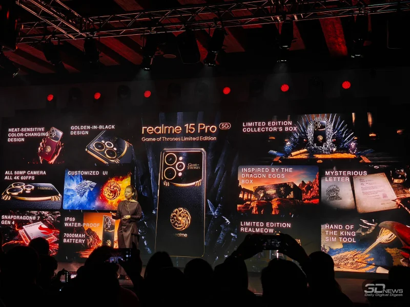 Компания Realme из Китая выпустила эксклюзивную модель смартфона Realme 15 Pro, вдохновлённую сериалом «Игра престолов». Помимо оригинального оформления и особой комплектации, устройство получило ряд дополнительных функций.