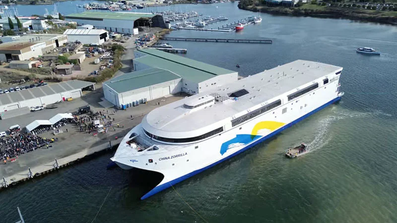Самое большое в мире аккумуляторное электрическое судно приступило к испытаниям в акватории порта Хобарта (Тасмания, Австралия). Проект осуществляет австралийская судостроительная компания Incat Tasmania по заказу аргентинского паромного оператора Buquebus. Судно проекта Hull 096, носящее имя «Чина Зоррилья» (China Zorrilla), оснащено 250 тоннами литиевых батарей и не использует топливо, что делает его мировым флагманом среди полностью электрических судов.