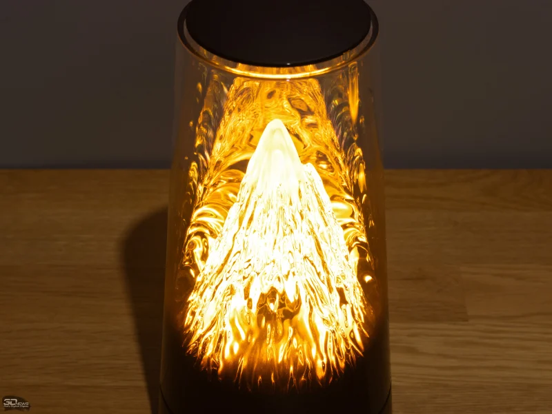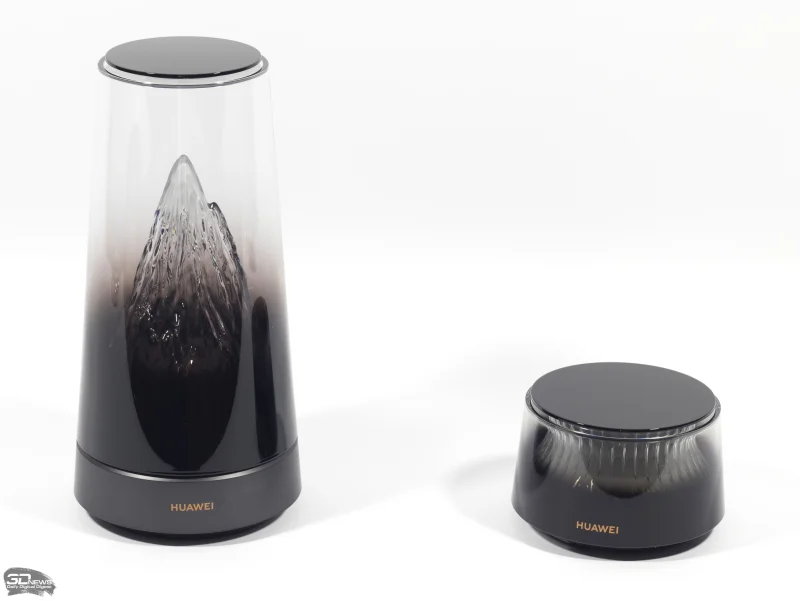 Вместо стандартного прямоугольного корпуса, характерного для большинства сетевого оборудования, данная модель выполнена в виде прозрачного усеченного конуса. Внутри него расположена кристаллическая структура с внутренней подсветкой. Свет по умолчанию имеет теплый янтарный оттенок, однако через мобильное приложение AI Life доступна настройка цветовой температуры — от насыщенного оранжевого до чистого белого, регулировка яркости, а также возможность автоматической синхронизации с временем дня и погодными условиями. Подсветку также можно активировать или деактивировать легким касанием верхней панели.