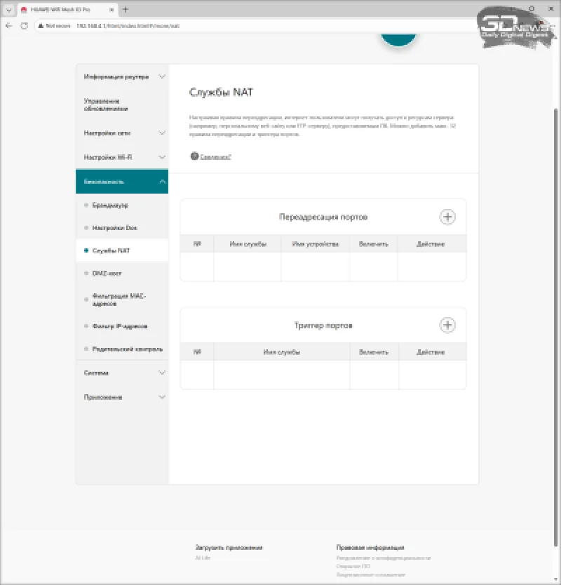 Кроме того, операционная система устройства включает базовые инструменты для регулирования доступа, настройки межсетевого экрана и организации проброса портов через NAT.