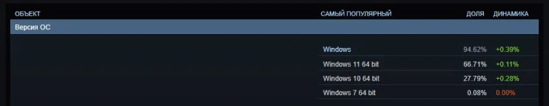 Опрос Steam также демонстрирует, что определённая часть пользователей ПК всё ещё выбирает компьютеры с большим объёмом оперативной памяти. В прошлом месяце доля систем с 32 ГБ ОЗУ возросла на 1,45 процентных пункта. Конфигурации с 16 ГБ памяти остаются наиболее распространёнными, однако системы с 32 ГБ отстают от них всего на 2 %.