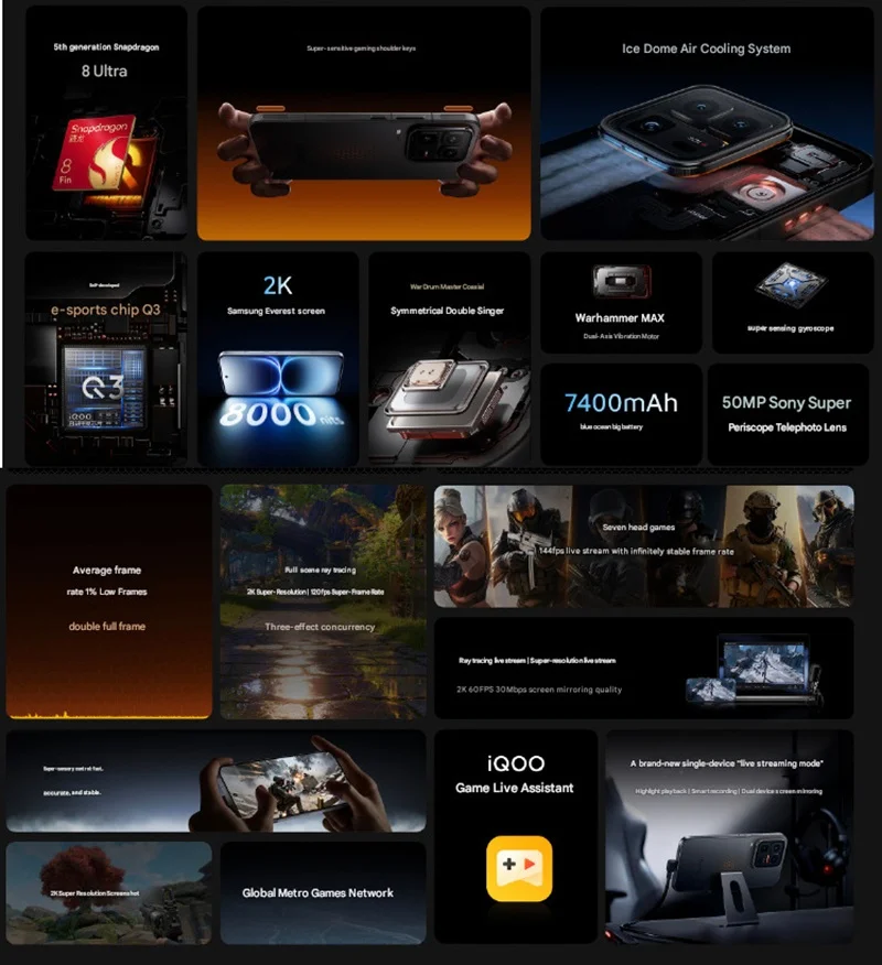 Кроме того, модель оснащена коаксиальной симметричной акустикой War Drum Master с технологией Dolby Atmos, двухосевым вибромотором Warhammer MAX и высокочувствительными сенсорными триггерами на боковой грани. Уровень защиты от воды и пыли соответствует стандартам IP68/IP69. Устройство работает под управлением Android 16 с оболочкой OriginOS 6.0.