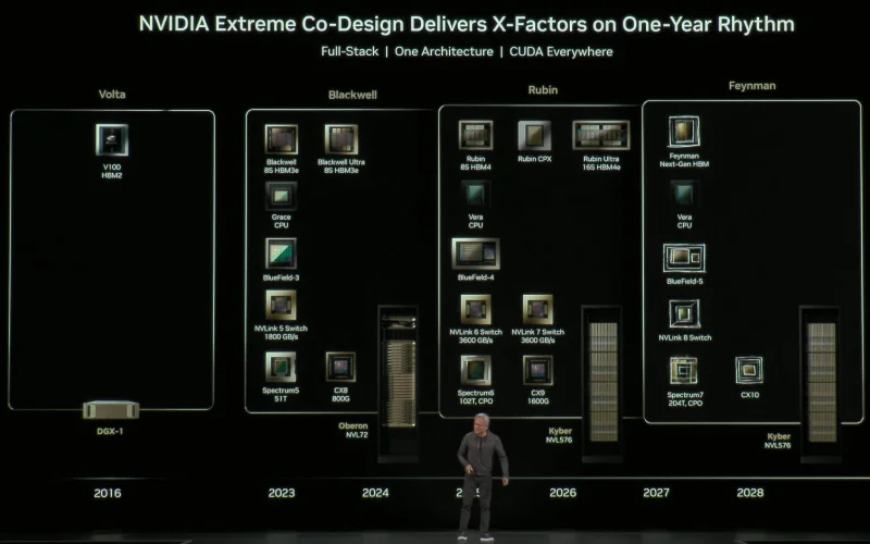 По данным Nvidia, первые опытные образцы Rubin уже направлены в лаборатории компании для тестирования, а серийный выпуск начнётся в 2026 году. Эту архитектуру сменит совершенно новая платформа Feynman, запуск которой ожидается в 2027–2028 годах. Тем не менее, Nvidia пока не демонстрировала реальные чипы на этой платформе — вероятно, на текущий момент они ещё не существуют в виде физических прототипов.