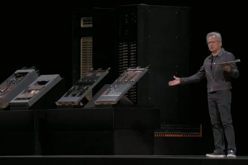 На мероприятии генеральный директор Nvidia Дженсен Хуанг представил публике новейший графический процессор Rubin. В ходе выступления он продемонстрировал прототип ускорителя Vera Rubin Superchip, где на единой плате размещены инновационный центральный процессор Vera и два масштабных графических чипа Rubin. Подобная интеграция открывает перспективы беспрецедентной производительности для искусственного интеллекта в суперкомпьютерах нового поколения.