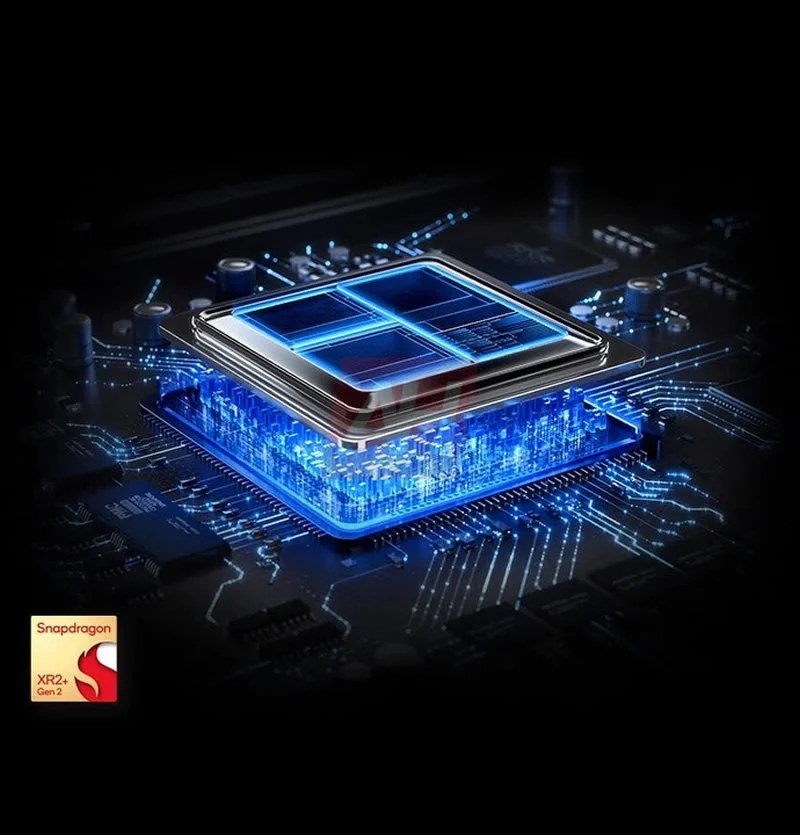 В основе вычислительной мощи устройства лежит чип Snapdragon XR2+ Gen 2, созданный Qualcomm при активном участии Samsung и Google. Этот процессор обеспечивает передачу картинки с чёткостью до 4,3K для каждого глаза, демонстрируя прирост производительности: графический ускоритель работает на 15 % быстрее, а центральный процессор — на 20 % в сравнении с прошлой версией. Кроме того, чип отвечает за обработку объёмного звука, интерпретацию жестов, выполнение задач на базе искусственного интеллекта и все виды отслеживания в режиме реального времени.