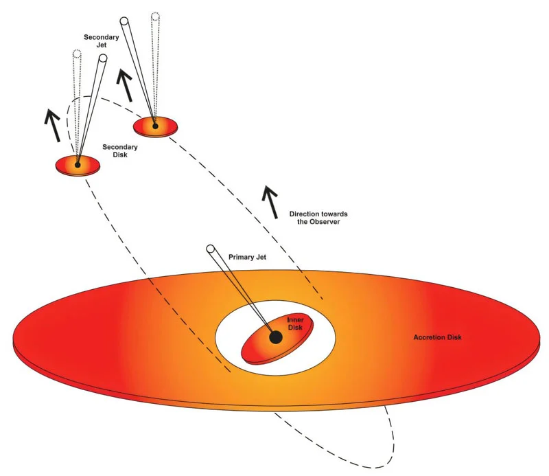 Проведённые измерения позволили сопоставить результаты с теоретической моделью, продемонстрировав абсолютное соответствие расчётов и экспериментальных данных. Знаковым достижением стало выявление «колеблющегося» потока частиц от меньшей чёрной дыры — её джет извивался в пространстве подобно собачьему хвосту под влиянием центробежных и гравитационных воздействий во время обращения меньшего объекта вокруг массивной компаньонки. Наблюдаемый феномен, для наглядности также уподобляемый извивающейся струе из поливочного шланга, раскрывает механику взаимодействия в системе и создаёт основу для предсказания её дальнейшей эволюции.