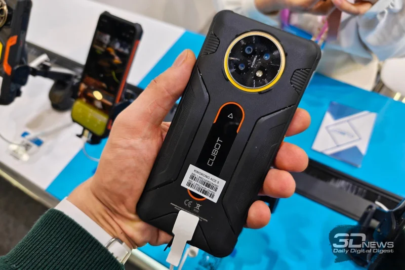 Другим ярким экспонатом стенда Cubot стал защищённый телефон KingKong Ace 5, предназначенный для применения в экстремальной обстановке — на производстве, в экспедициях или при занятиях спортом на открытом воздухе. Модель объединяет в себе крепкий корпус, ёмкий аккумулятор и достаточно скромную, но экономичную аппаратную начинку.