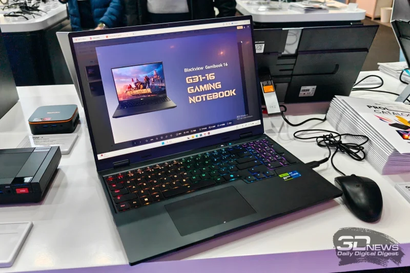 Помимо мобильных гаджетов, на выставке MWC компания Blackview продемонстрировала игровой ноутбук GamiBook 16. Он оснащён 16-дюймовым ЖК-экраном с разрешением 2560 × 1600 пикселей. Внутри установлен процессор Intel Core i7-13650HX поколения Raptor Lake Refresh, а графическая производительность обеспечивается дискретной видеокартой NVIDIA GeForce RTX 5060 в сочетании со встроенной графикой Intel.
