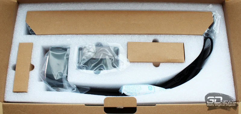 Внутри картонной коробки находится мягкий вкладыш из пенополиэтилена с индивидуальными ячейками для всех элементов системы водяного охлаждения.