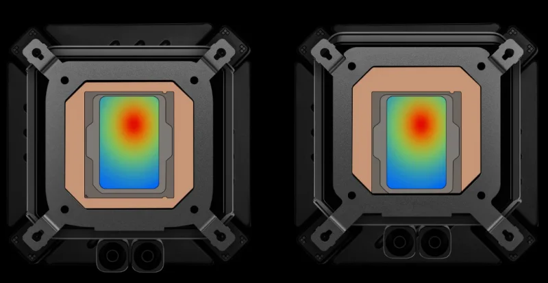 А вот для Intel процесс установки несколько интереснее. Во-первых, для LGA1851 и LGA1700 применяются разные прижимные пластины водоблока со смещением, что обеспечивает оптимальный тепловой контакт с кристаллом процессора под теплораспределительной крышкой.