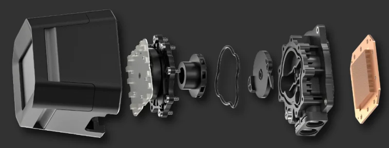 В данной системе охлаждения используется помпа шестого поколения, оборудованная трёхфазным четырёхполюсным электродвигателем с шестью пазами и точным векторным (FOC) управлением.