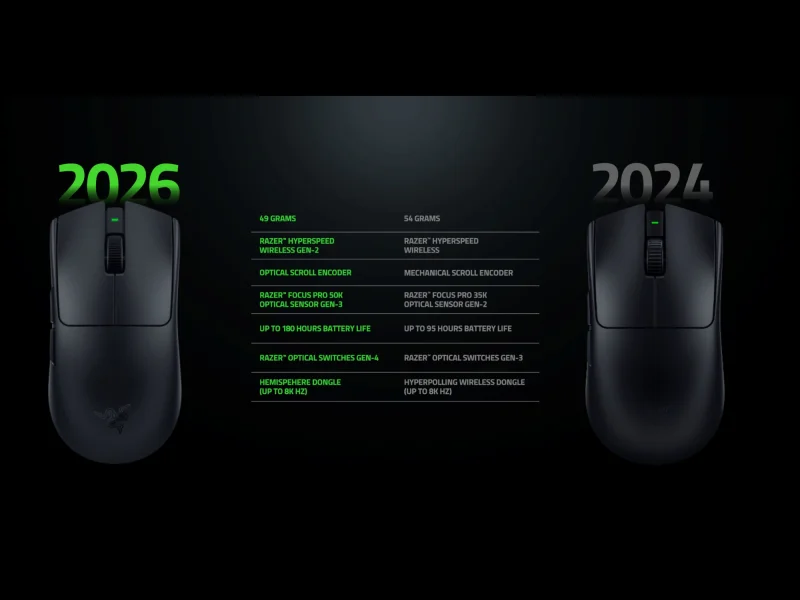 Razer анонсировала беспроводную игровую мышь Viper V4 Pro. Устройство получило обновлённый оптический датчик с чувствительностью до 50 000 DPI и аккумулятор увеличенной ёмкости в сравнении с предшественницей Viper V3 Pro. Razer Viper V4 Pro уже поступила в продажу в чёрном и белом цветовых вариантах по цене $159,99. Приобрести новинку можно в фирменном онлайн-магазине Razer, а также у партнёров-ритейлеров.