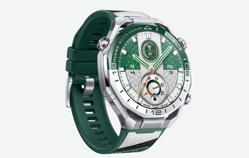 Флагманские умные часы Huawei Watch Ultimate 2 теперь можно приобрести в новом зелёном цвете. Корпус выполнен из сверхпрочных материалов, таких как жидкометаллический сплав на основе циркония, сапфировое стекло, нанокерамика и титан. В комплект поставки входят четыре сменных ремешка: зелёно-белый композитный, титановый, а также зелёные ремни из фторэластомера стандартной и увеличенной длины.