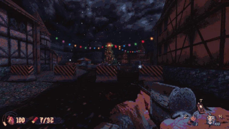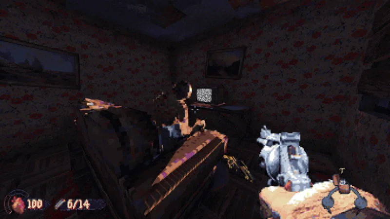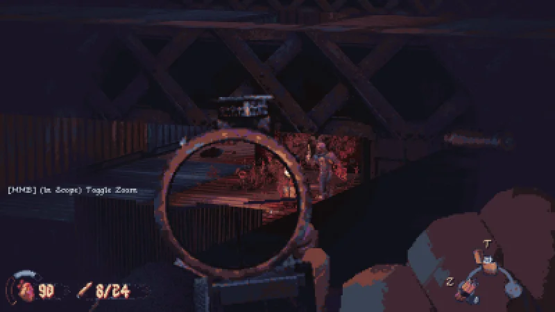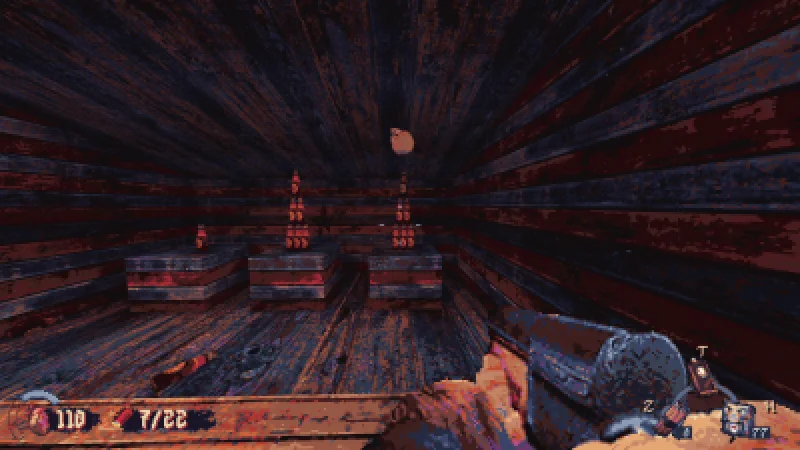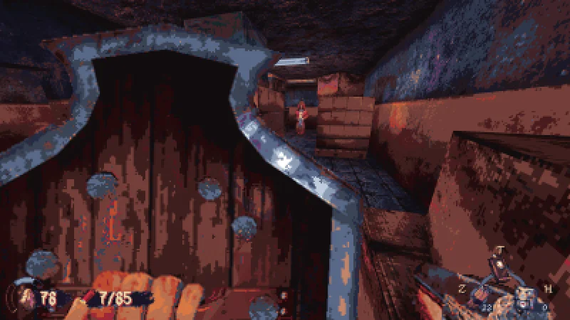 Отлично проработаны и игровые локации. Здесь есть как открытые зоны, где к вражескому лагерю можно подобраться с разных направлений, так и разнообразные коридоры и арены. Лишь визуальное оформление явно на любителя. Вся окружающая среда создана в полноценном 3D, но многие детали интерьера сделаны вокселями, чтобы имитировать пиксельную графику. Противники же, в духе шутеров середины 90-х, представляют собой двумерные спрайты. Это не проблема сама по себе, но из-за бордово-коричневой цветовой гаммы пейзажи и сектанты порой сливаются в пёстрое месиво. Хотя иногда игра радует интересными визуальными композициями.