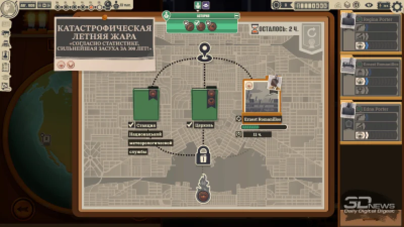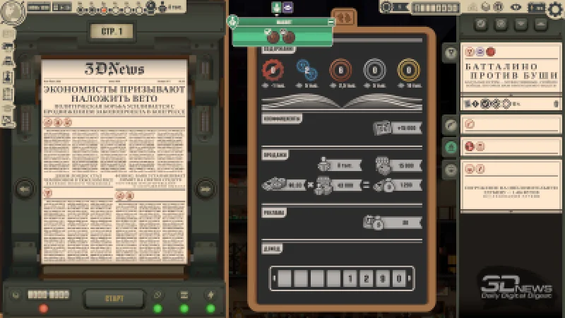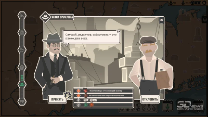 Параллельно необходимо заботиться о комфорте сотрудников. Печатные машины, оборудование и даже сантехника создают шум, в некоторых помещениях становится душно, что-то выходит из строя, возникают перебои с питанием, водой или туалетной бумагой… К счастью, коллектив не отличается излишней привередливостью — люди не устраивают бунт из-за каждой мелкой неурядицы, парализуя работу. Но, например, у репортёров может упасть уровень внимания, из-за чего они временно потеряют доступ даже к темам своей специализации. А это, с большой вероятностью, серьёзно ударит по качеству предстоящего воскресного номера — в итоге вы подведёте свою фракцию, не привлечёте новых подписчиков и понесёте финансовые потери.