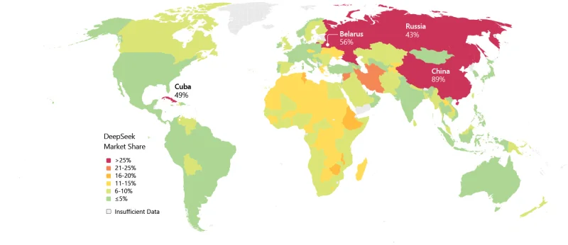 Особого внимания заслуживает проект DeepSeek — разработка китайской компании, создавшая ИИ-модель, которая по уровню может соперничать с ведущими американскими аналогами. Данная модель распространяется с открытым исходным кодом по лицензии MIT, а её бесплатный чат-бот доступен через веб-сайт и в формате мобильного приложения. Именно открытость и лёгкость доступа позволили DeepSeek стать востребованным на рынках, слабо охваченных западными платформами: например, в Африке активность пользователей в 2–4 раза превышает средние показатели по другим регионам. Сервис также широко применяется в странах с относительно невысоким распространением искусственного интеллекта — таких как Китай, Россия, Беларусь и Куба. Росту его известности способствовала партнёрская инициатива, реализованная совместно с Huawei. Опыт DeepSeek наглядно демонстрирует, что распространение ИИ зависит от доступности и качества моделей: пользователи отдают предпочтение тем сервисам, которые лучше соответствуют их экономическим, языковым и политическим условиям.