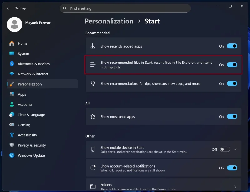 Ранее убрать блок с предложениями из меню было невозможно. Если включить функцию, скрывающую рекомендации, то в "Проводнике" также перестанут отображаться последние использованные элементы.