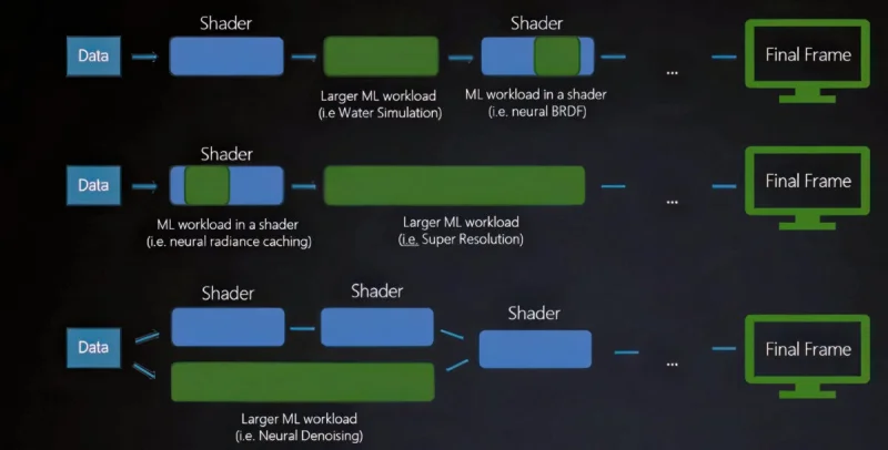 Сейчас Microsoft создаёт инструменты DirectX Linear Algebra и DirectX Compute Graph Compiler, которые позволят стандартизировать и облегчить для разработчиков запуск ИИ-операций через DirectX, отказавшись от отдельных, зависящих от вендора решений. Эти инструменты найдут применение в нейронном рендеринге, масштабировании на основе ИИ, генерации текстур и прочих эффектах.