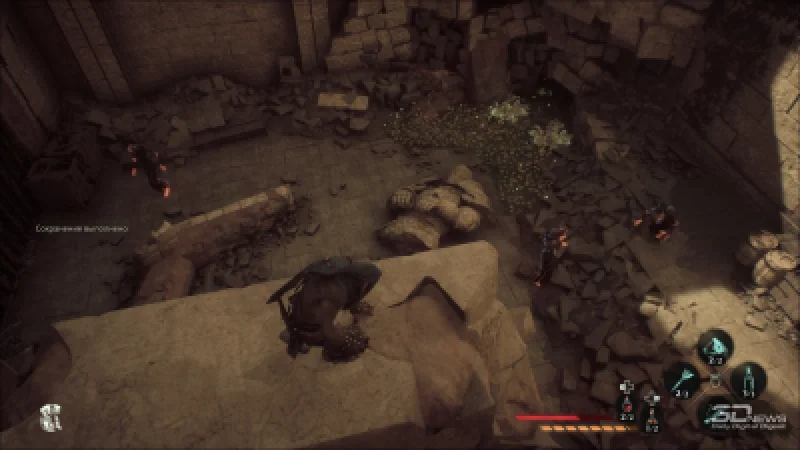 Начало третьей части явно стремится произвести впечатление дорогой постановки. Оказывается, голем не был окончательно побежден. Отложив взаимные претензии, Стикс взбирается на колосса, подобно Кратосу из God of War 3. Он проникает внутрь, уничтожает его сердце и спешно ретируется, пока каменное чудовище не обрушилось на него. Звучит динамично, но на практике пробежка по унылому коридору в сопровождении скромных визуальных эффектов — зрелище не самое впечатляющее. К счастью, это не определяет общее впечатление от игры.