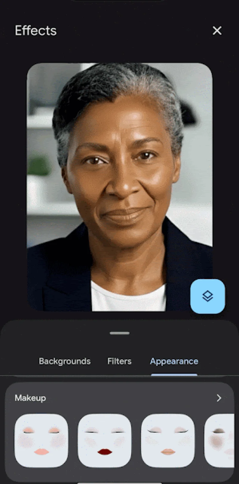 Как заявляет Google, цифровой макияж адаптируется к движениям человека в кадре, сохраняя естественность. Например, при поднесении чашки к губам эффект останется на лице, а не сместится на предмет.