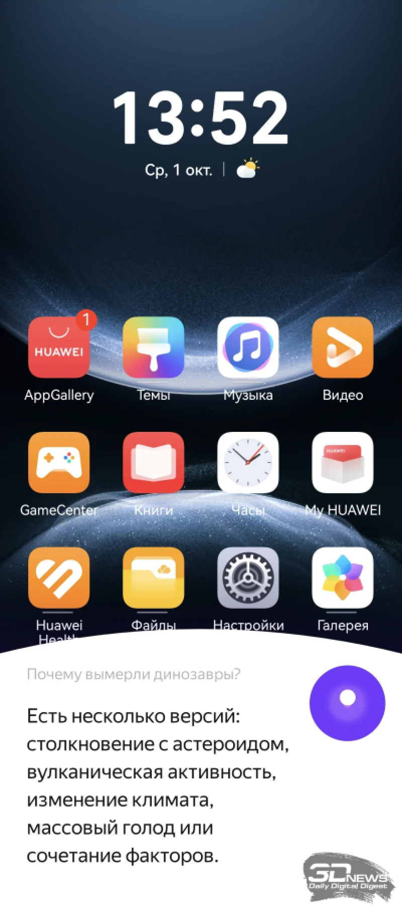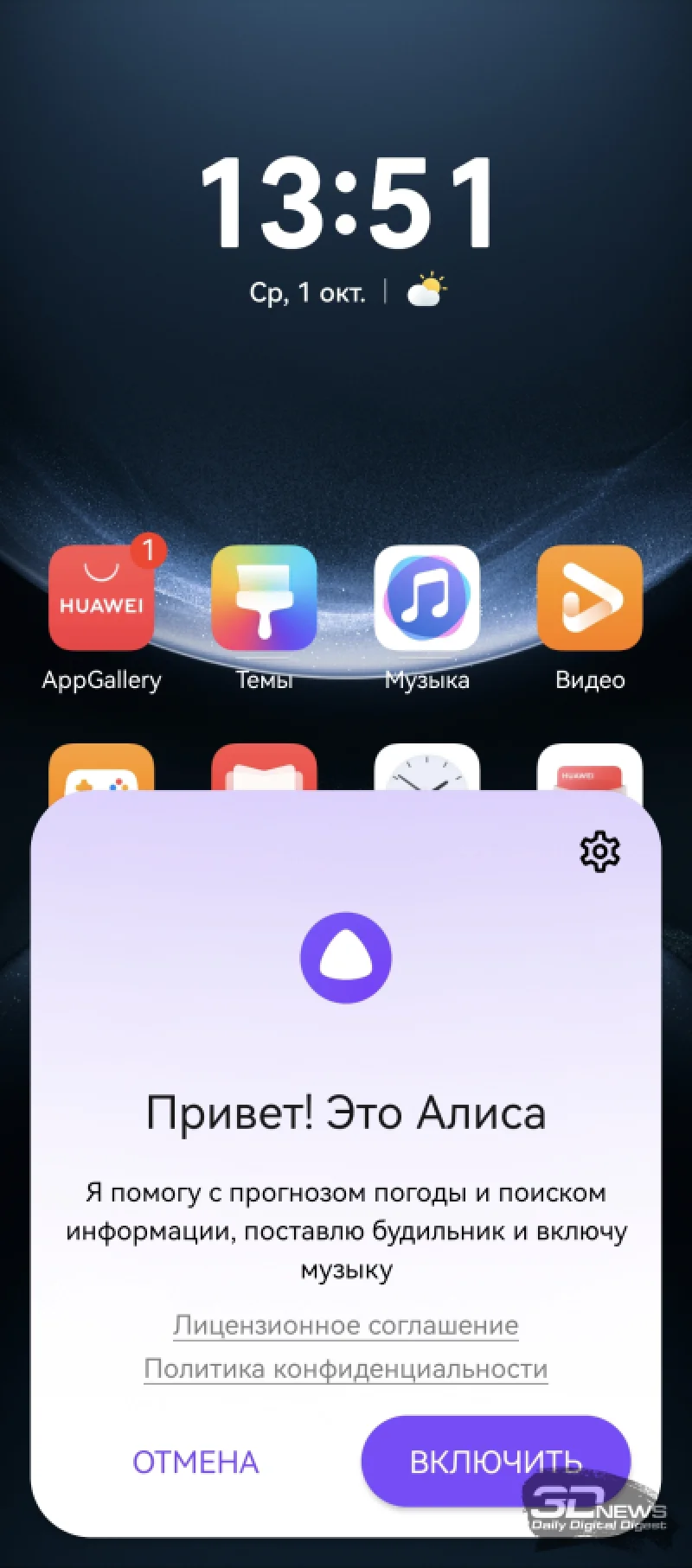 EMUI представляет собой скоростной и эстетичный интерфейс, однако обладает двумя существенными недостатками (помимо отсутствия сервисов Google). Первый — это огромный объем рекомендуемого к установке программного обеспечения. К счастью, оно не предустановлено, но пользователю всё равно приходится тратить время на очистку папок. С этой проблемой пока ничего не делается. Второй минус системы (в сравнении с аналогами) постепенно устраняется — речь идёт о недостаточно глубокой интеграции нейросетевых технологий в функционал устройства. Улучшения происходят как собственными силами (доступно ретуширование снимков с применением искусственного интеллекта — удаление лишних объектов и подбор наилучшего выражения лиц при серийной портретной съёмке), так и благодаря «Алисе», запускаемой нажатием кнопки питания. Однако есть важное условие — в аппарате должна быть установлена российская SIM-карта (иначе активация «Алисы» возможна исключительно через отдельное приложение). Базовая функциональность доступна полностью, но для активации режима Live требуется подписка «Алиса Про» — при этом владельцы смартфона получают бесплатный доступ на 90 дней. Как уже отмечалось в обзоре HUAWEI Pura 80, интеграция российских сервисов в экосистему при отсутствии Google выглядит продуманным решением со стороны Huawei, как с точки зрения замены, так и в аспекте формирования уникального пользовательского опыта.