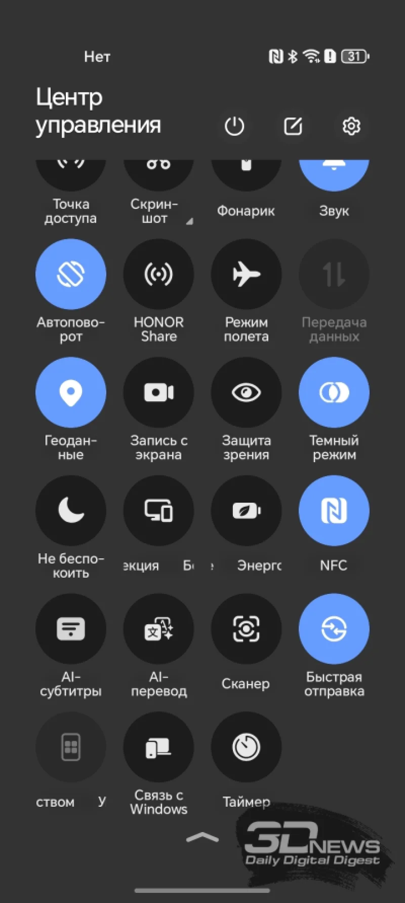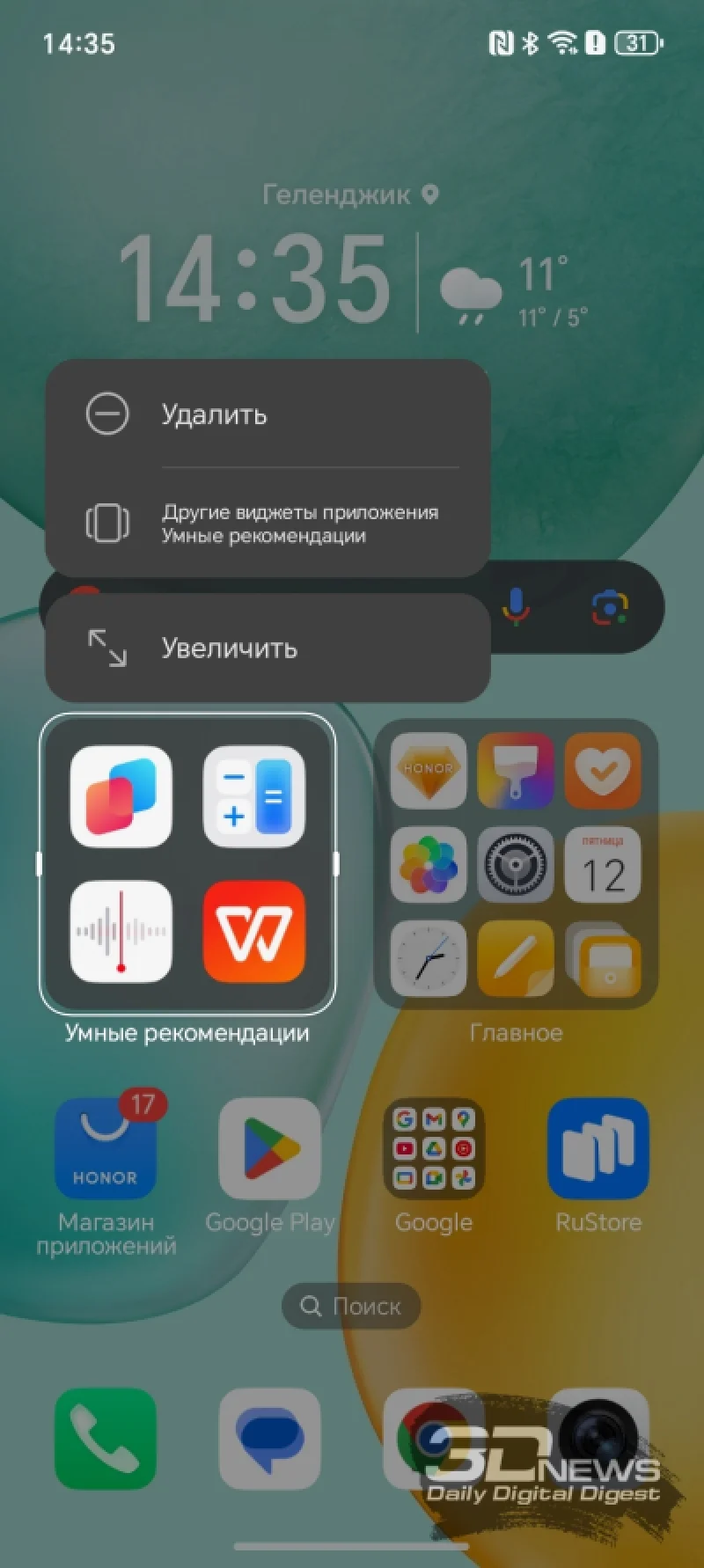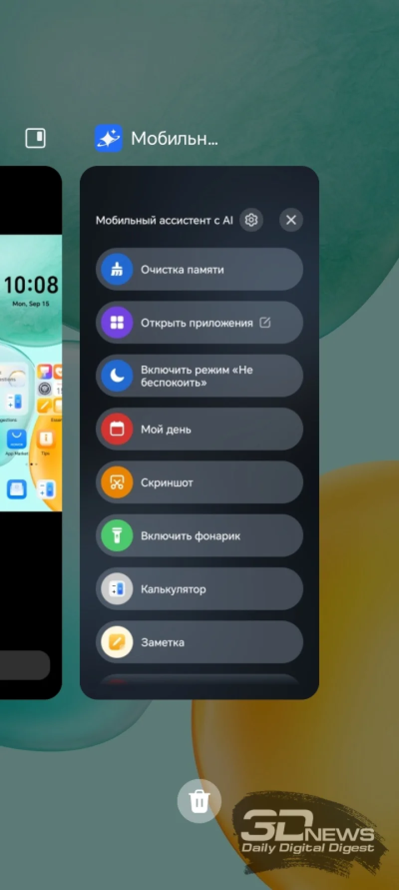 Как и в модели HONOR X7d, здесь присутствует дополнительная кнопка на левом торце, запускающая специальное меню «Мобильного ассистента с AI». Связь с искусственным интеллектом, как и в «семёрке», здесь скорее номинальная — это в основном маркетинговое название. По сути, это просто набор функций для быстрого доступа, куда можно добавить до пяти приложений по своему выбору.