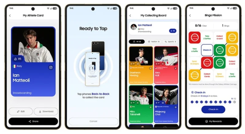 - карта Galaxy Athlete — цифровая платформа для обмена профилями и взаимодействия спортсменов с другими участниками Олимпиады;